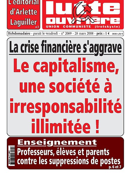 La crise financière actuelle risque de déboucher sur la crise économique la plus grave depuis la guerre. Cette perspective catastrophique est évoquée par une des têtes pensantes du monde capitaliste, l'ancien président de la banque centrale américaine. Une crise économique grave, cela signifie des milliers d'entreprises fermées ou fonctionnant au ralenti, des licenciements en masse, le chômage, la plongée dans la misère pour une grande partie de la population laborieuse.
