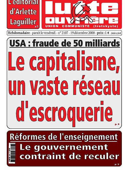 Kerviel, le courtier de la Société Générale qui avait réussi à faire perdre près de 5 milliards d'euros à sa banque sans même qu'elle s'en aperçoive, est battu à plate couture. Un nommé Madoff, une des figures les plus respectées de Wall Street d'après les commentateurs, ancien patron du Nasdaq, la deuxième plus importante Bourse des États-Unis, gérant d'un fond de placement et philanthrope à ses heures, a été arrêté par le FBI pour une fraude de 50 milliards de dollars !