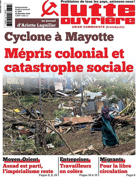 Samedi 14 décembre, un cyclone a ravagé Mayotte. À 8 000 km de Paris, c’est le département le plus pauvre de France. Les bidonvilles et les maisons de tôle qui abritaient un tiers de la population ont été soufflés. Des milliers de morts sont à redouter car beaucoup de sans-papiers ont eu peur de se rendre dans les abris proposés par la préfecture… par crainte d’être expulsés ! Car oui, le gouvernement français, loin de combattre la misère, mène une véritable guerre contre les pauvres qui viennent des îles voisines des Comores.